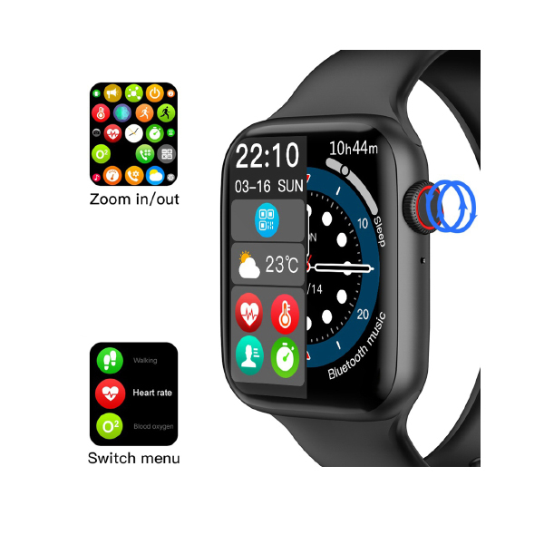 ساعت هوشمندا م آر اس مدل watch7 luxe2 جدید ترین مدل از ساعت های سری 7 اسمارت واچ که یکی از پرفروش ترین مدل های ساعت هوشمند در یک ماه های اخیر بوده است، می باشد. از بزرگترین ارتقا های این مدل نسب به مدل های پیشین خود می توان به بالا رفتن رزولیشن صفحه کلید اسکرول(مجیک باتون )فعال ، افزایش تنوع واچ فیس ها و سرعت عملکرد بهتر می باشد. این ساعت دارای صفحه نمایش HD با کیفیت خیره کننده و تمام صفحه (فول اسکیرین). همچنین رنگ ها در صفحه نمایش این ساعت جلوه ویژه ای دارند که عمق رنگی مشکی نیز برتری آن را تکمیل می کند. در این مدل همانند مدل های سری 7 انواع سنسور های سلامتی همچون سنجش ضربان قلب ، فشار خون ، دما بدن، گام شمار و … که دارای کیفیت بالای هست . از دیگر ویژگی های جدید این ساعت می توان به سنسور موشن اشاره کرد که با کمک این ویژگی شما میتوانید عملکرد ساعت را با حرکت دست خود کنترل کنید، برای مثل زنگ تماس را با چرخاندن دست خود در حالت سکوت قرار دهید و یا با تکان دادن دست خود تماس را پاسخ دهید. بند این ساعت قابل تعویض بوده و به همراه این ساعت یک عدد آداپتور و یک عدد بند اضافه می باشد . لازم به ذکر است در مدل اصلی این ساعت هولگرام MRS بر روی جعبه بوده است
