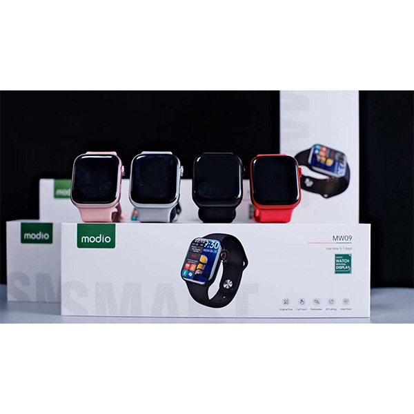 « ساعت هوشمند مودیو» مدل (MW09)در کنار کیفیت مطلوب و طراحی شیک قابلیتهای ویژه و حائز اهمیتی دارد، که به محبوبیت این مدل میافزاید. این مدل ساعت دارای صفحه نمایش 1.75 اینچی و ظرفیت باطری 210 میلی آمپر میباشد. سایز صفحه نمایش « ساعت هوشمند مودیو» مدل (MW09) 44 میلی متر میباشد.صفحه نمایش این ساعت مستطیل شکل و دارای مجیک باتن و شارژر مگنتی میباشد، شما میتوانید با وارد شدن به صفحه تنظیمات ساعت قابلیت روشن شدن صفحه نمایش را با تکان دادن دست فعال کنید. این مدل ساعت قابلیت تنظیم دلخواه نور صفحه نمایش را دارد و میتوانید زمان روشنایی صفحه نمایش را از 3 ثانیه تا 15 ثانیه تغییر دهید. همچنین میتوانید صفحه نمایش خود را قفل نمایید و برای آن رمز درنظر بگیرید. بندهای این مدل ساعت قابل تعویض است، با نصب برنامه Wearfit Pro میتوانید تنظیمات دلخواه خودتان را انجام دهید.