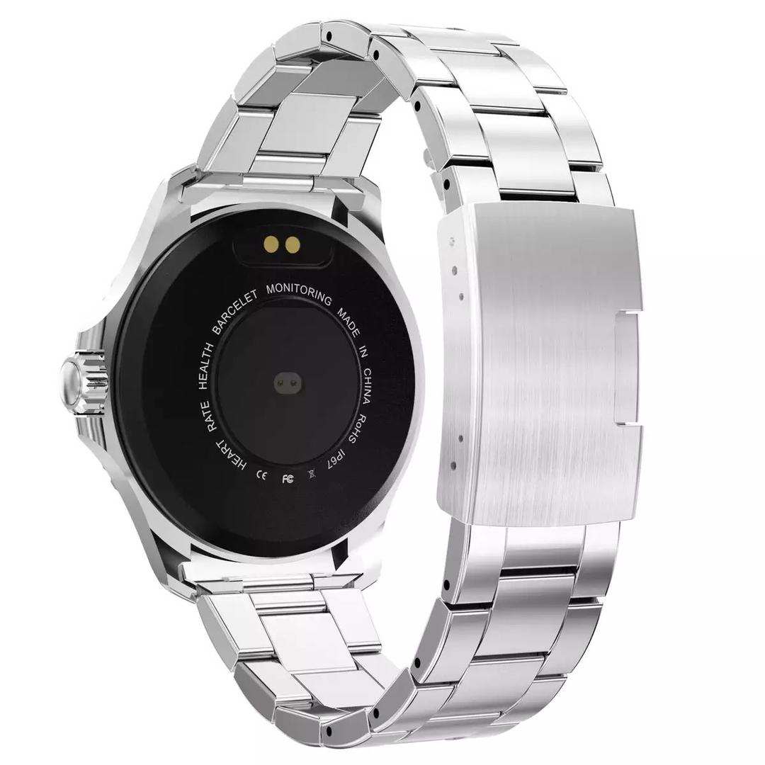 ساعت هوشمند هپی تاچ مدل Diamond-R1 یکی از مدل های 2021 این کمپانی است که با طراحی بسیار خاص خود توانسته فروش موفقی در بازار های دنیا کسب کند. اگر به دنبال یک ساعت هوشمند شکیل با درجه بیزینسی هستید بدون شک این ساعت انتخاب شماست. چراکه با ظاهر کلاسیک و با کیفیتش امکانات ساعت هوشمند را نیز داراست. جنس بدنه آلومینیوم و بند قابل تعویض استیل آن بر جذابیت های این ساعت افزوده است. این ساعت به صورت 24 ساعته وضعیت سلامت شما را پایش میکند. ساعت Diamond-R1 دارای صفحه نمایش فول تاچ بسیار با کیفیت و گرد IPS با حاشیه بسیار کم بوده و همچنین مجهز به سنسور های سنجش ضربان قلب، اکسیژن خون، فشار خون، گام شمار و چرخش دست می باشد و نمایش تمام پیام ها و شبکه های اجتماعی، اعلان تماس ها و کنترل موسیقی، حالت خواب، شاتر دوربین، مدها و رکوردهای ورزشی مختلف، تایمر و کورنومتر فقط بخشی از قابلیت های این ساعت زیبا میباشد. همچنین ست کاملی از مد های وزرشی داخل خانه و خارج خانه را ارایه میدهد که نیاز هر فرد ورزشکار حرفه ای و آماتور را نسبت به رکوردهای ورزشی و ارتقا سلامتی برطرف میکند. واچ فیس این ساعت نیز قابل تغییر بوده و دارای ده ها عدد واچ فیس متحرک با قابلیت انخاب تصویر پس زمینه دلخواه از طریق نرم افزارمحبوب Wearfit pro می باشد. لازم به ذکر ایت نسخه باکیفیت این ساعت را میتوانید با برند هپی تاچ از فروشگاه کالازون تهیه نمایید.