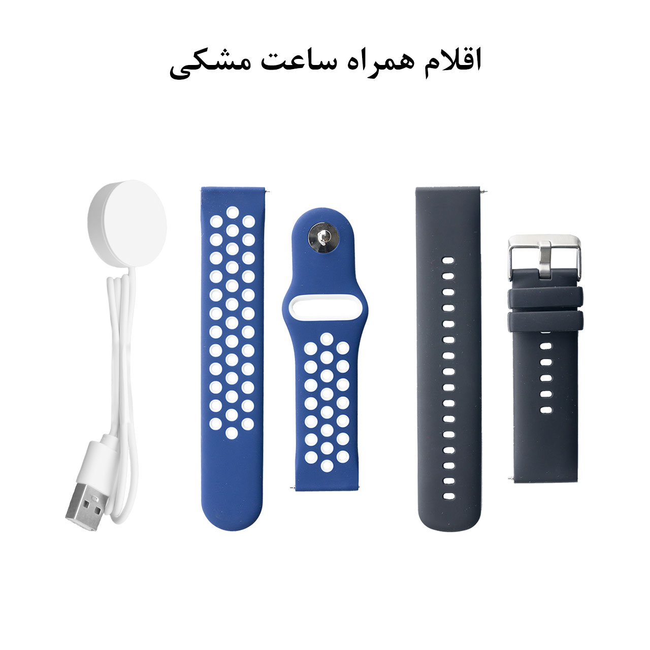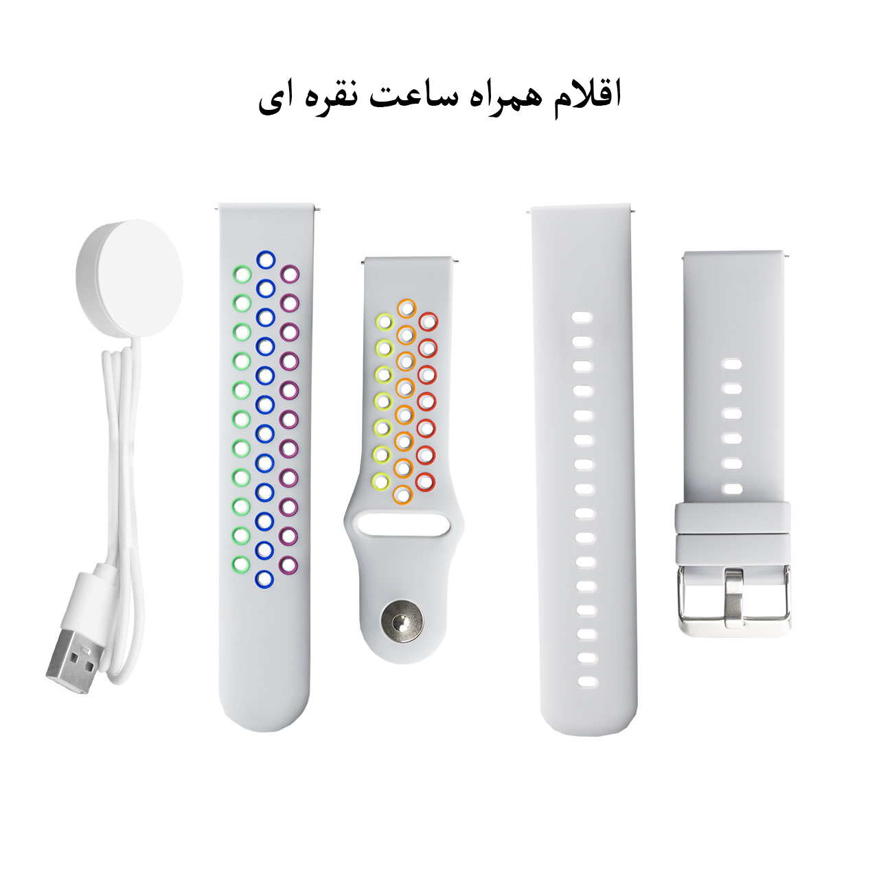 - اقلام همراهدو عدد بند سیلیکونی - شارژر ساعت هوشمند و راهنمای نصب نرم افزار به صورت فارسی